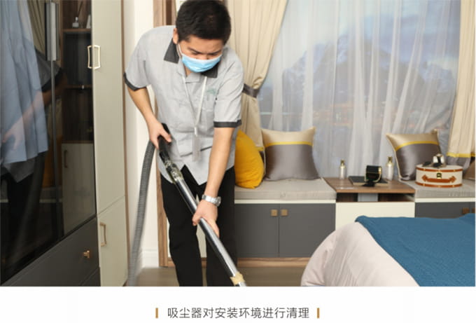 產品安裝確認無誤后及時清理房間內因安裝產生的垃圾并保持空氣流暢,然后用干凈的抹布將家具擦拭一遍,確保產品清潔,用吸塵器對安裝環(huán)境進行清理,并對所有安裝好的產品拍攝記錄作為完工效果備案。