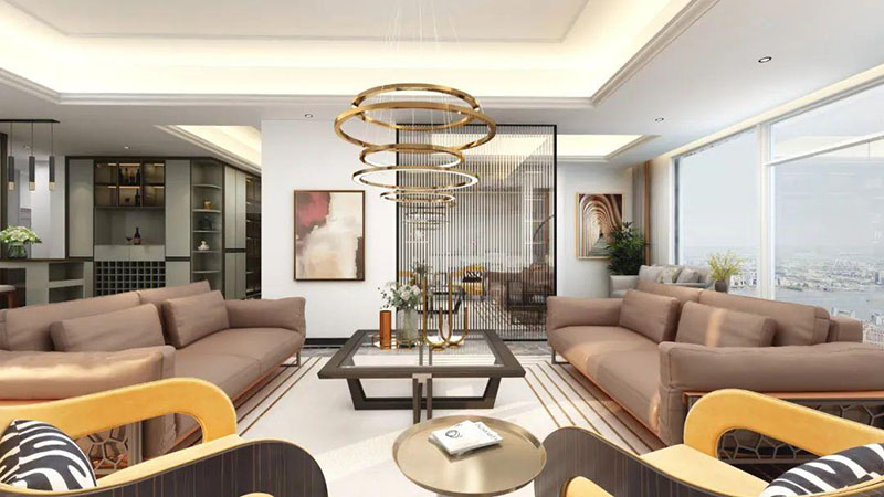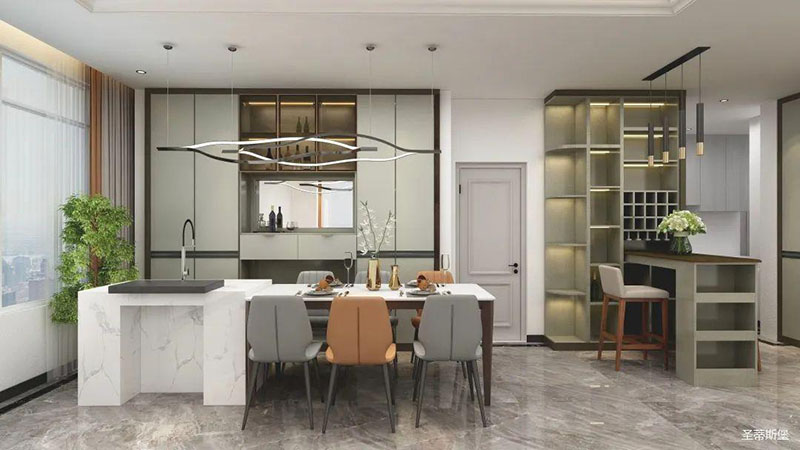 餐廚開放式設(shè)計,令空間更為清透明亮。色系一致的餐邊柜,封閉與開放式儲******立又統(tǒng)一,正面鑲嵌玻璃,延伸了視覺空間,僅用簡約線條區(qū)分,將意式極簡形式展現(xiàn)。造型別致的金屬線條燈飾,給整體空間帶來了靈動感。