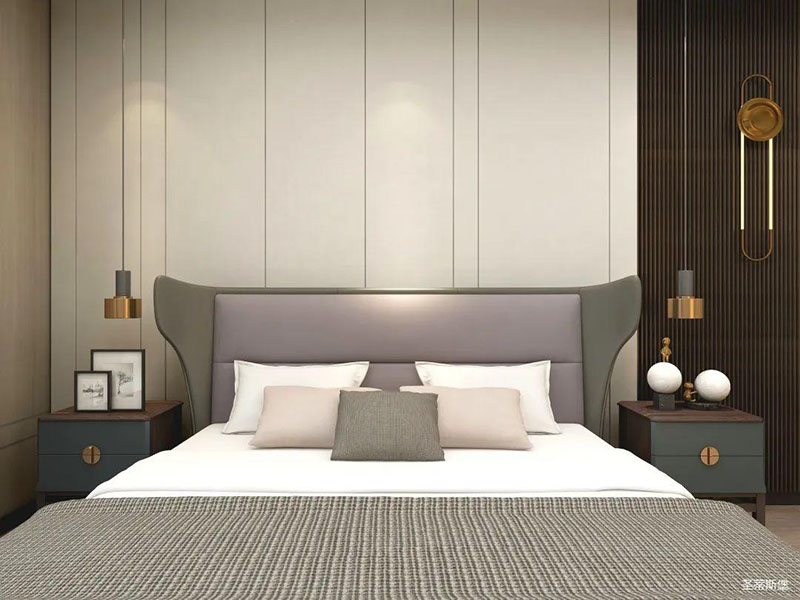 臥室精簡有致,從質(zhì)感出發(fā),打造由內(nèi)而外的優(yōu)雅奢華感。背景墻、地板、地毯均擁有較強的肌理感,在加上金屬軟裝飾物調(diào)和,讓空間在低調(diào)內(nèi)斂的基礎(chǔ)上又不失時尚的高級感,飄窗進階為溫馨的一角,閑暇時,則可倚窗而坐,品一杯紅酒,感受生活中的愜意時光。