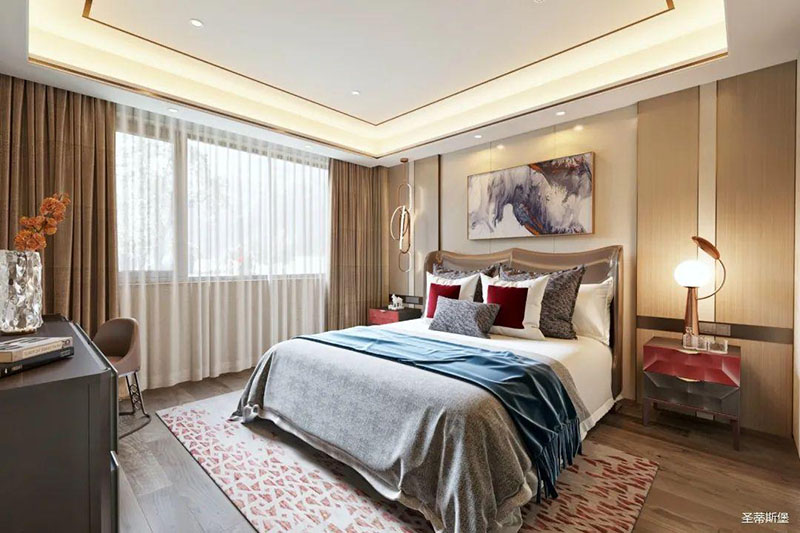 臥室作為日常休憩的場所,燈光的氛圍就是睡眠質(zhì)量的體現(xiàn)。安裝吊頂臥室可以選擇筒燈,吸頂燈,無主燈設計可替代主燈在一定空間內(nèi)形成泛光,均勻照亮整個空間,光線柔和舒適。