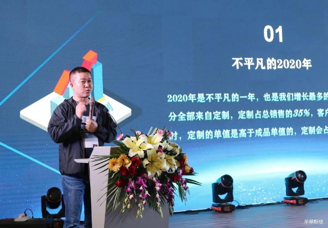 華燈璀璨的開場儀式,點燃了現(xiàn)場如火如荼的氣氛。PA視訊集團(tuán)營銷總經(jīng)理陳玉偉先生對晚會進(jìn)行了主題發(fā)言,他對2020年的營銷工作進(jìn)行了總結(jié),并著重從營銷工作部署、重點項目開展、產(chǎn)品整合、拎包幫扶、渠道運營和移動+定制整裝優(yōu)勢等方面對2021年的營銷工作做了全面的統(tǒng)籌規(guī)劃。同時,他還講解了“美國夢凱莎床墊”新品的產(chǎn)品工藝、市場優(yōu)勢、產(chǎn)品定位,使經(jīng)銷商對我們的新產(chǎn)品擁有更深入的認(rèn)識和了解。