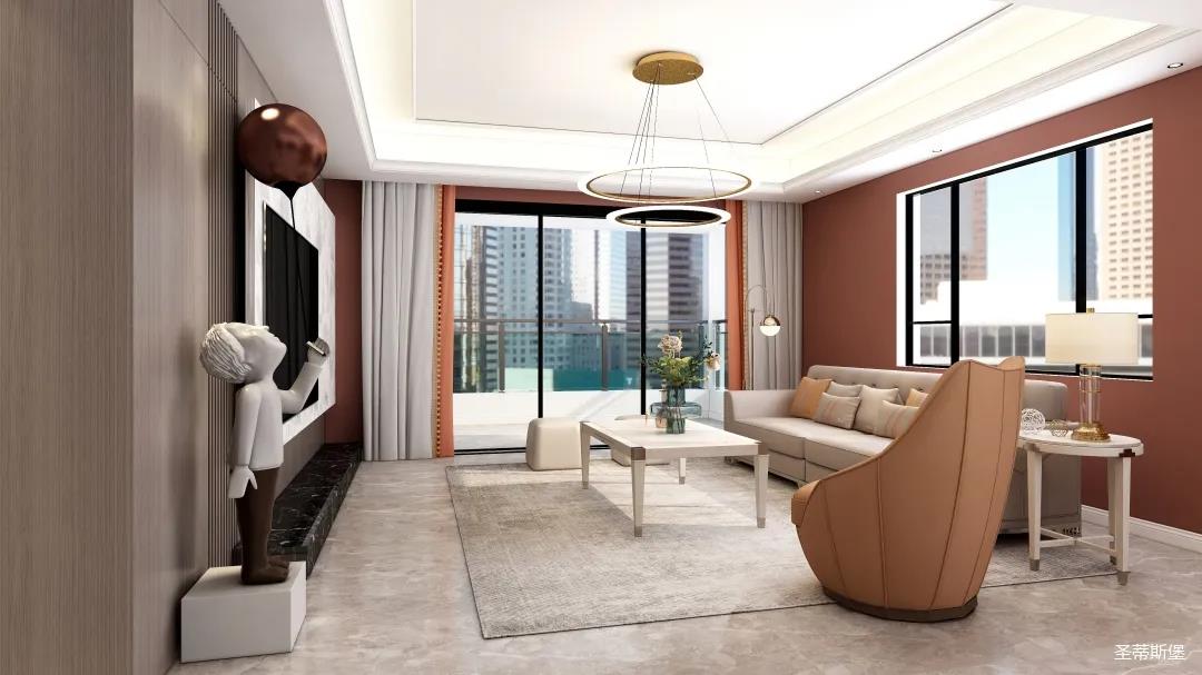 表姐不喜歡大白墻設(shè)計(jì),于是設(shè)計(jì)師完美貼合表姐的喜好,摒棄了傳統(tǒng)的大白墻,將色彩跳躍的鐵銹紅應(yīng)用于空間,從視覺上豐富了空間的層次感。南北通透的空間布局,讓視野更為清透明亮。