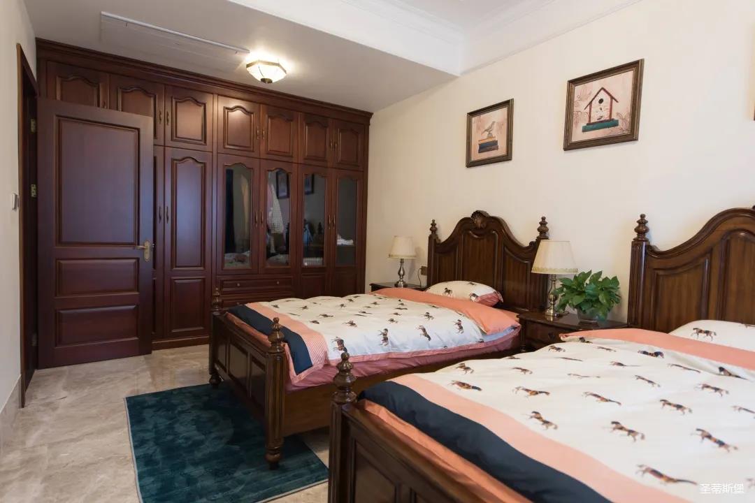 結(jié)合業(yè)主的需求,精簡(jiǎn)打造客房,秉承了古典主義和諧對(duì)稱(chēng)的原則。在中性復(fù)古的色彩中,調(diào)和出溫馨懷舊的味道。家具精雕細(xì)琢的品質(zhì),令空間沉浸在古典的氛圍里,讓居家生活親切而有靈魂!