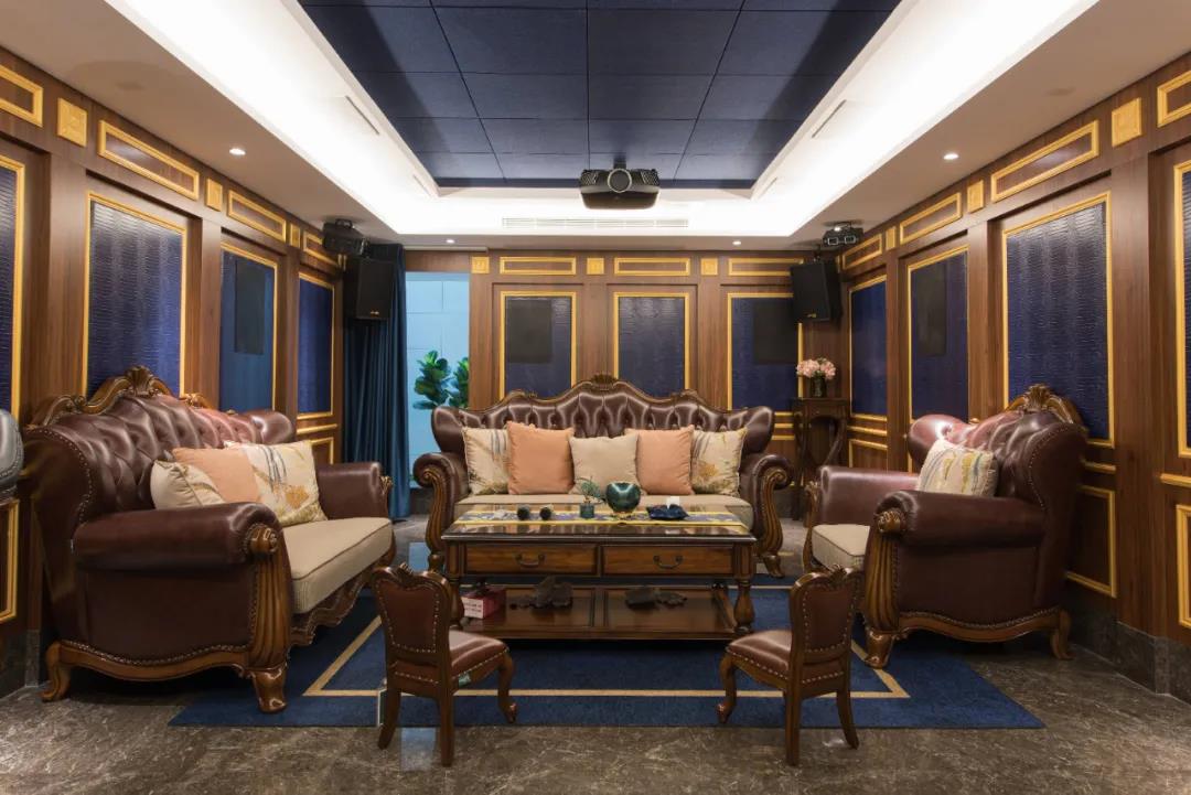 業(yè)主夫婦非常熱情好客,平時(shí)工作之余也會(huì)在家里邀三兩好友一起觀影,觀影室的整體設(shè)計(jì)容納著濃烈的古色古香,長(zhǎng)方形圖案排列搭配復(fù)古的家具與配飾,精細(xì)的雕花藝術(shù),于細(xì)節(jié)之間演繹著精致生活。不管時(shí)光如何輾轉(zhuǎn)變換,家的定義從不曾改變,它撫慰著我們的心靈,承載著我們的喜樂(lè),從細(xì)膩的質(zhì)感中感知家的點(diǎn)滴變化,才是對(duì)生活最真實(shí)的寫(xiě)照。