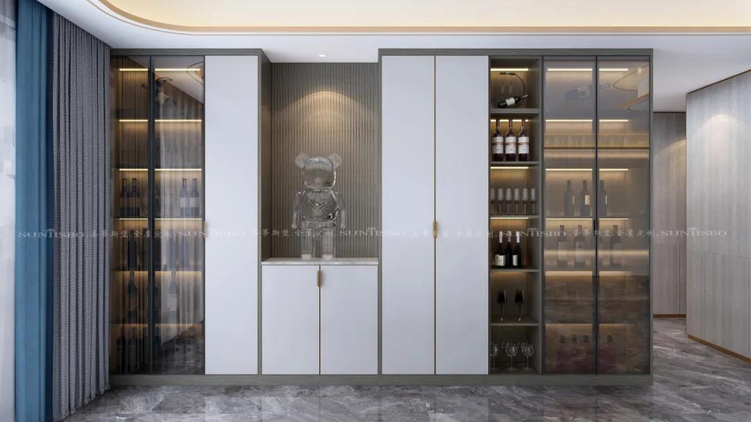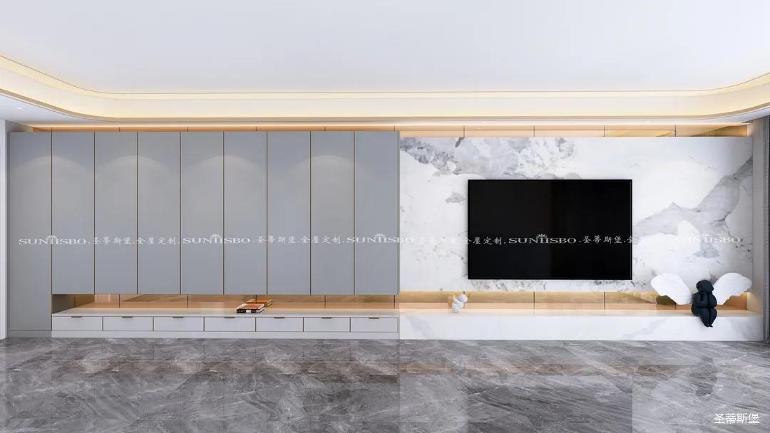 在細(xì)節(jié)設(shè)計(jì)之中,設(shè)計(jì)師以實(shí)木+紋理,營(yíng)造一派簡(jiǎn)約輕奢之感,看似沒(méi)有繁雜的元素修飾,卻讓家多了一份高級(jí)感。