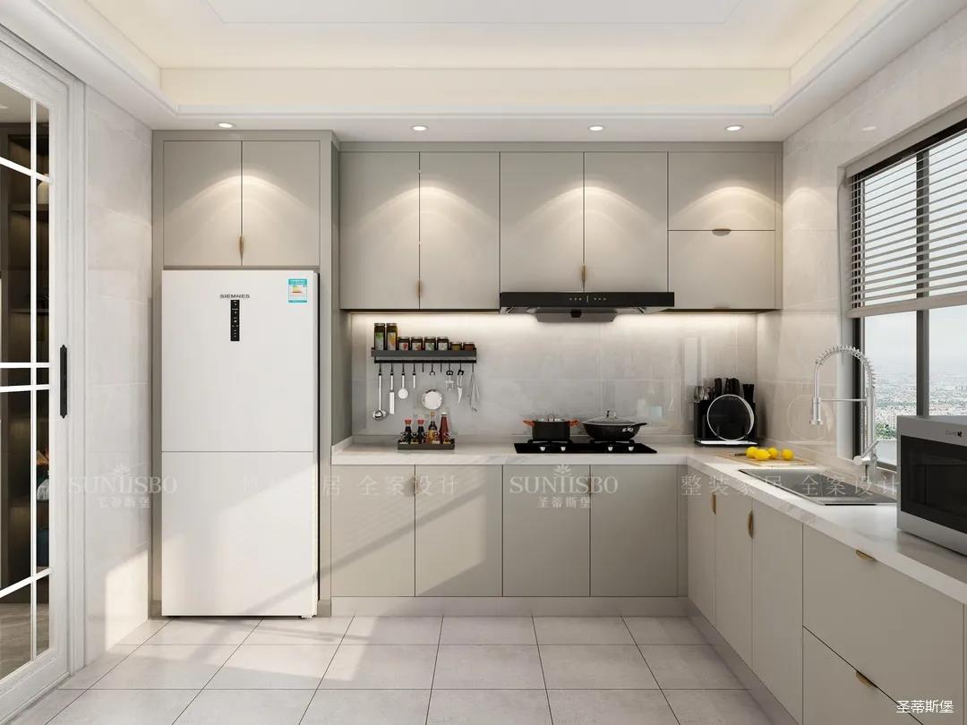 客餐廳、廚房的極簡風(fēng)格和諧統(tǒng)一,鑒于現(xiàn)代家庭中日益增加的廚房電器設(shè)備,設(shè)計(jì)師在用廚動線上頗為用心,L型的動線將生活習(xí)慣自然的融入整體家居之中。保持著中性簡約的調(diào)性,運(yùn)用溫潤的實(shí)木材質(zhì)與剛毅的線條,營造出摩登時(shí)尚的氛圍。將廚房區(qū)域自然融入整體家居之中。保持著中性簡約的調(diào)性,用溫潤的原木材質(zhì)或是圓潤的曲線線條,平衡空間的冷峻。