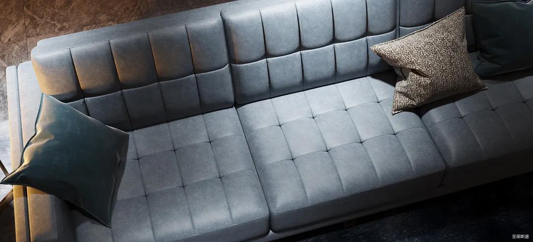 極具細(xì)節(jié)考究的“霸氣”沙發(fā),從霧霾藍(lán)的色彩中彰顯著業(yè)主沉穩(wěn)氣質(zhì)與時(shí)尚品位。線條規(guī)律整齊,方塊式的設(shè)計(jì),以摩登時(shí)尚演繹著優(yōu)雅的幾何美學(xué)力量。