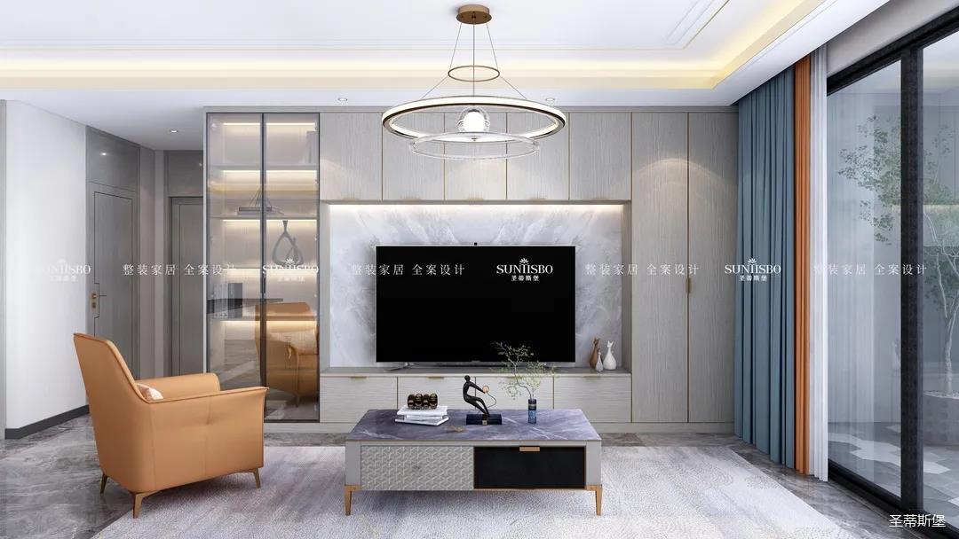 高級(jí)灰+活力橙,是百看不厭的經(jīng)典搭配,當(dāng)冷靜與熱情碰撞,為客廳奠定了時(shí)尚優(yōu)雅的基調(diào)。設(shè)計(jì)師以定制柜為原型,打造出兼具實(shí)用與裝飾功能為一體的電視背景墻,金屬包邊的柜體,在幾何燈光的照耀下散發(fā)出光澤,提升了整體空間的質(zhì)感,也撩動(dòng)著我們的心弦。