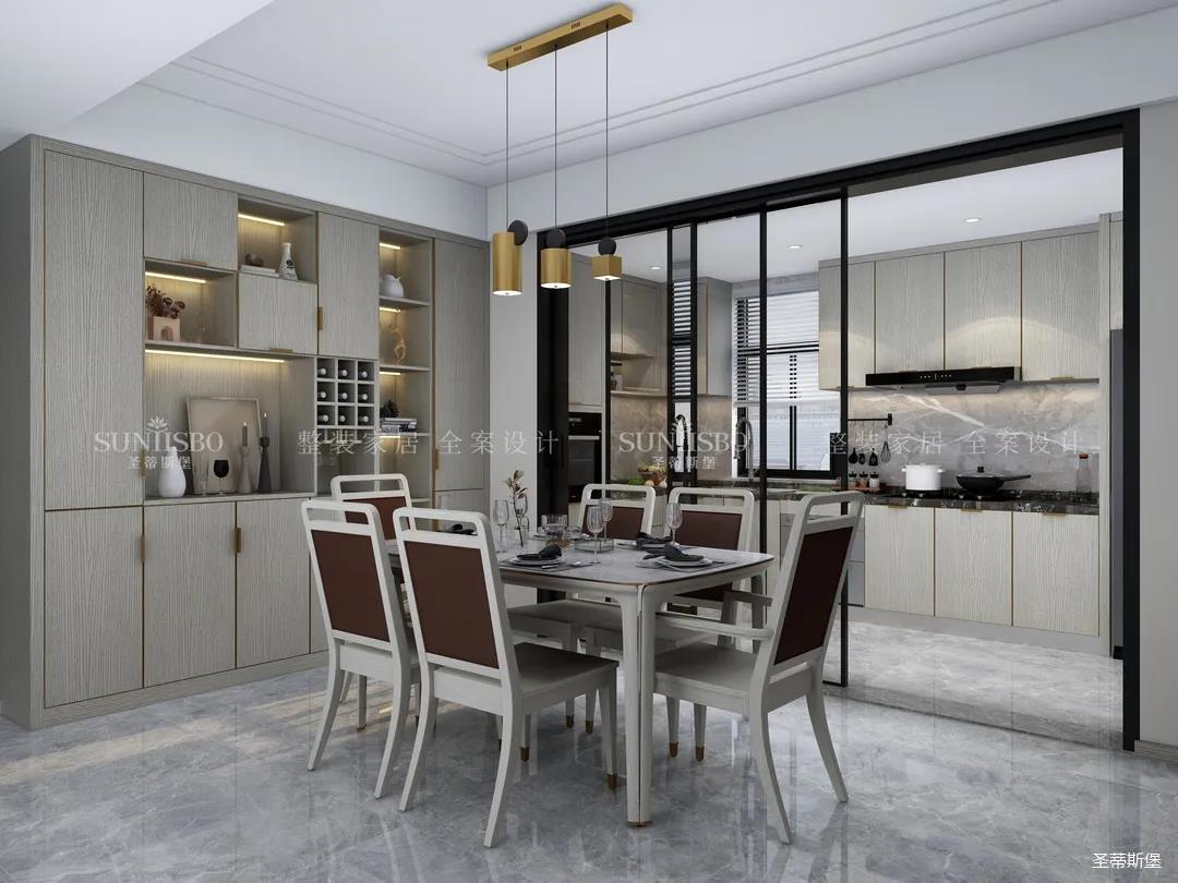 廚房餐邊柜的設(shè)計不遺余力的表達(dá)了收納充足藏而不漏,空間經(jīng)過設(shè)計斟酌,將木元素作為空間主流,柜體上最能體現(xiàn)質(zhì)感的歲月紋理,既是工藝升級的表現(xiàn),又是時尚的標(biāo)志。